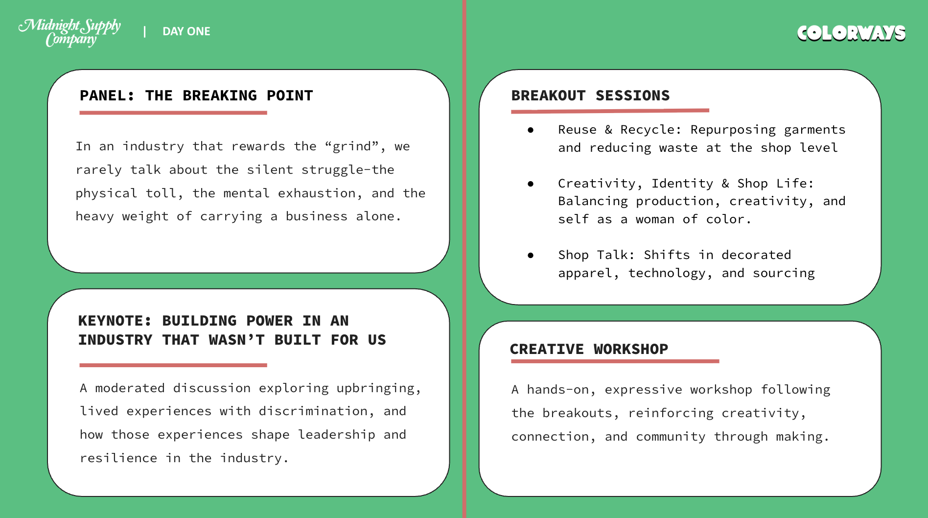 Colorways returns to Seattle for two days of connection, learning, and behind-the-scenes access to apparel manufacturing.